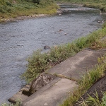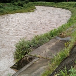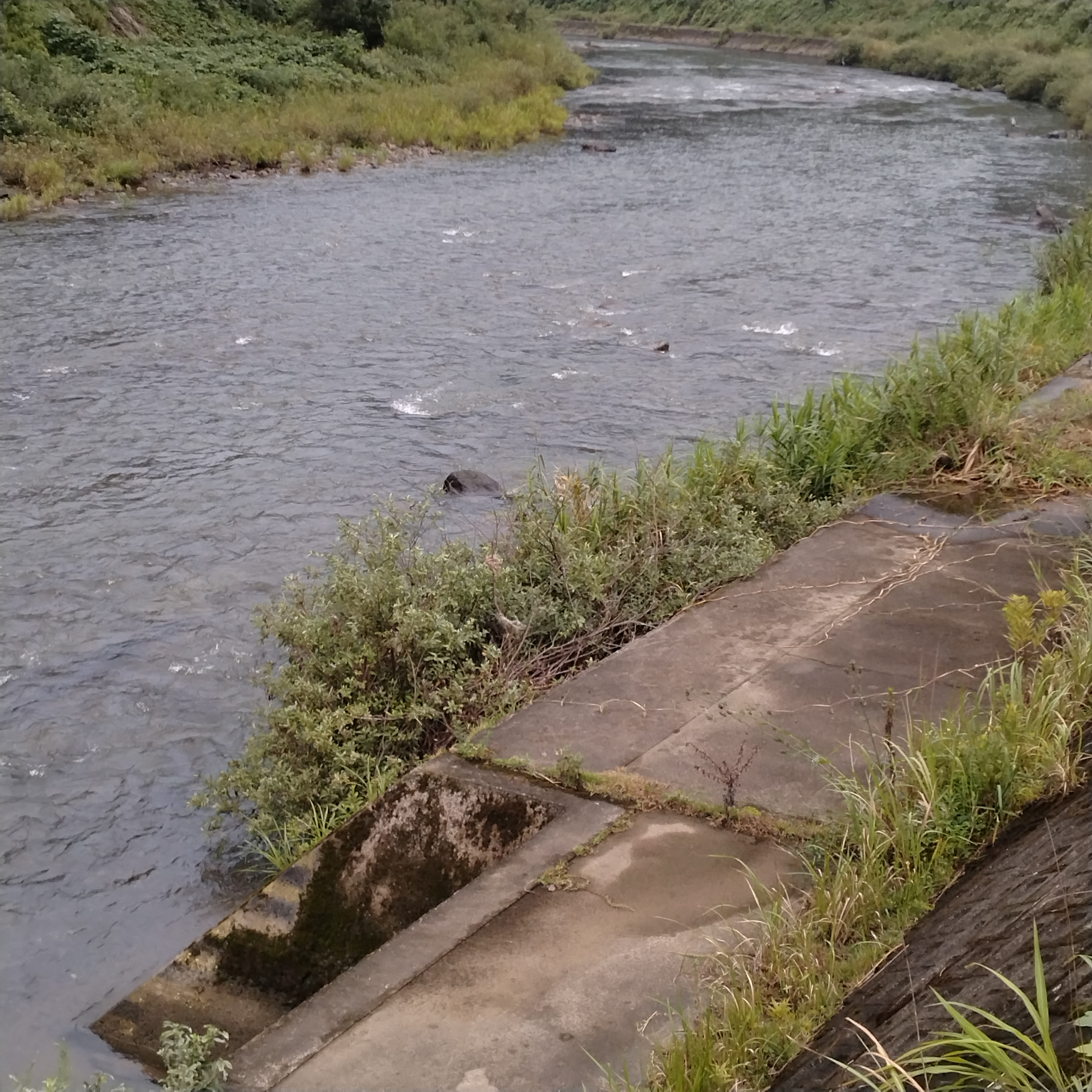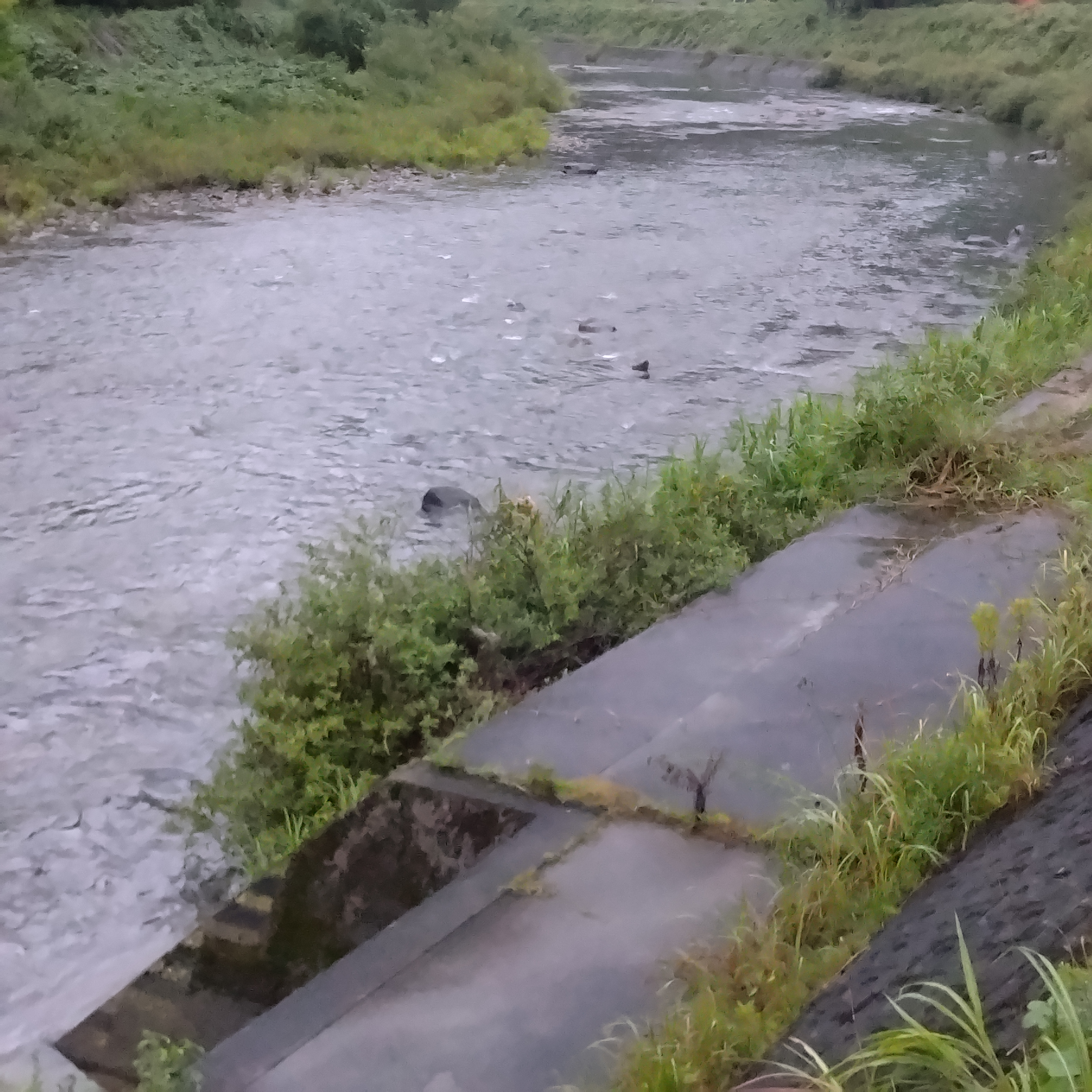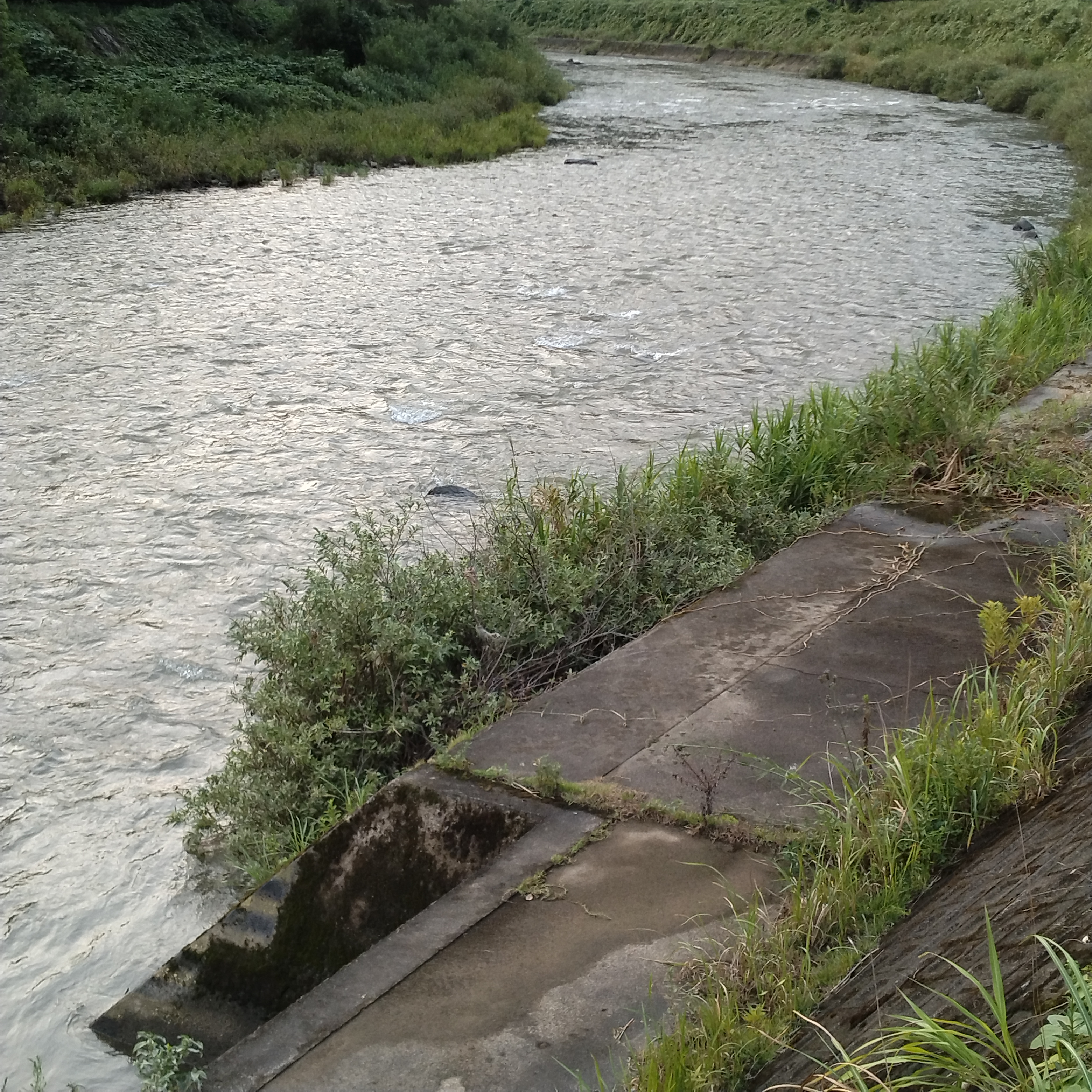 水位は平水やや高め、薄茶色の濁り。