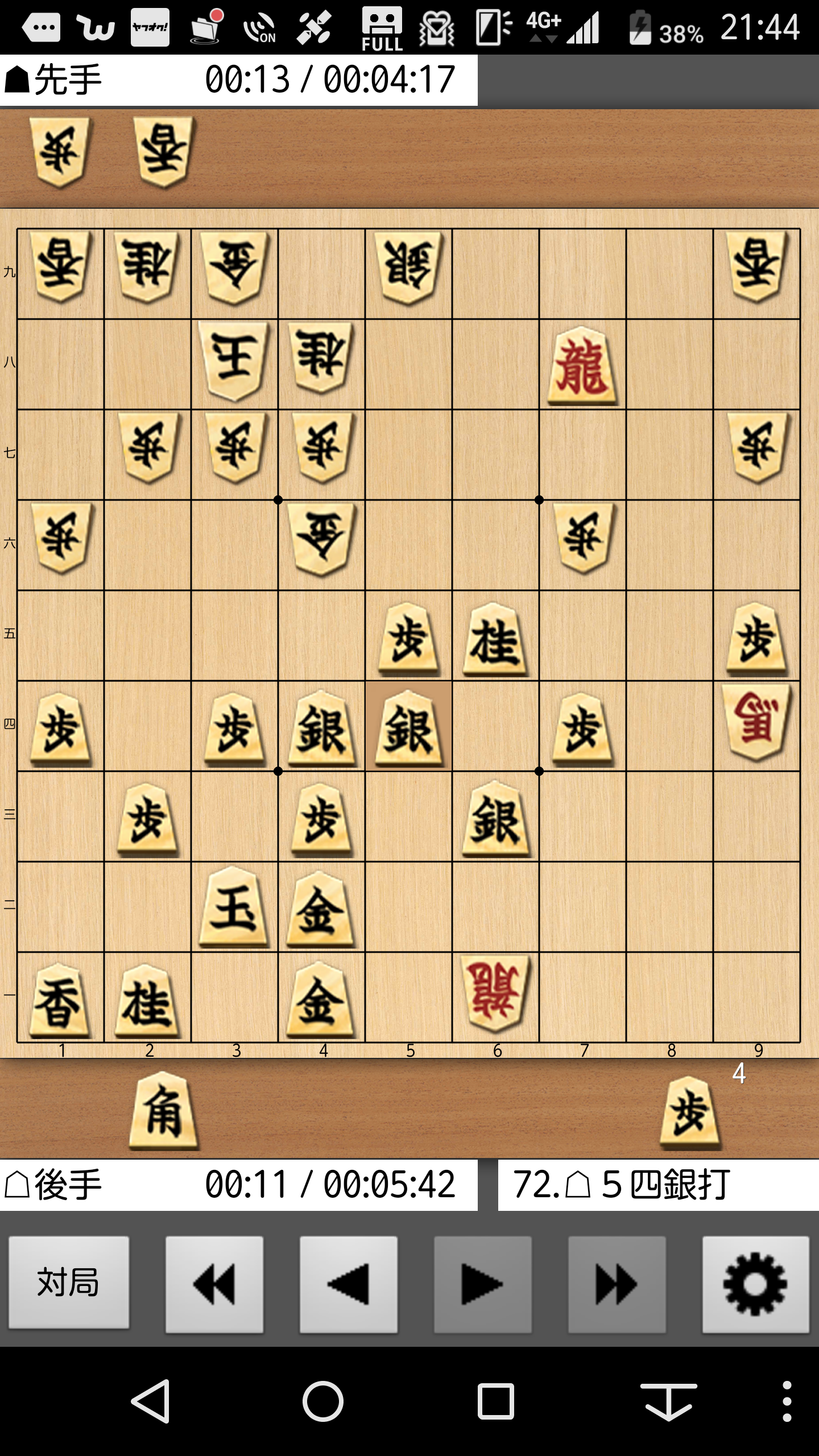 △5四銀打ではありません。単に△5四銀です、大事な持ち駒をここで使う訳にはいきません(^^)。