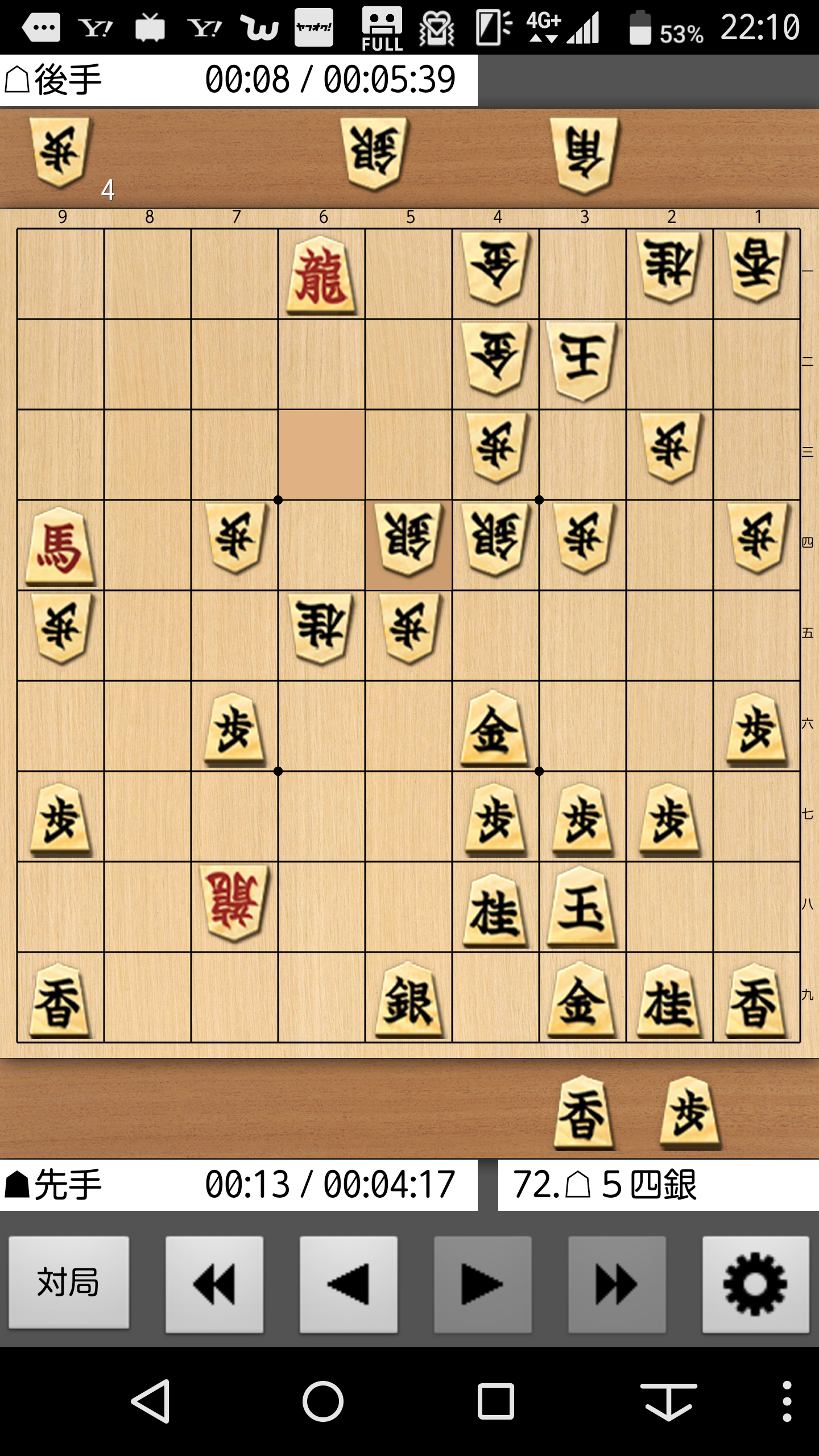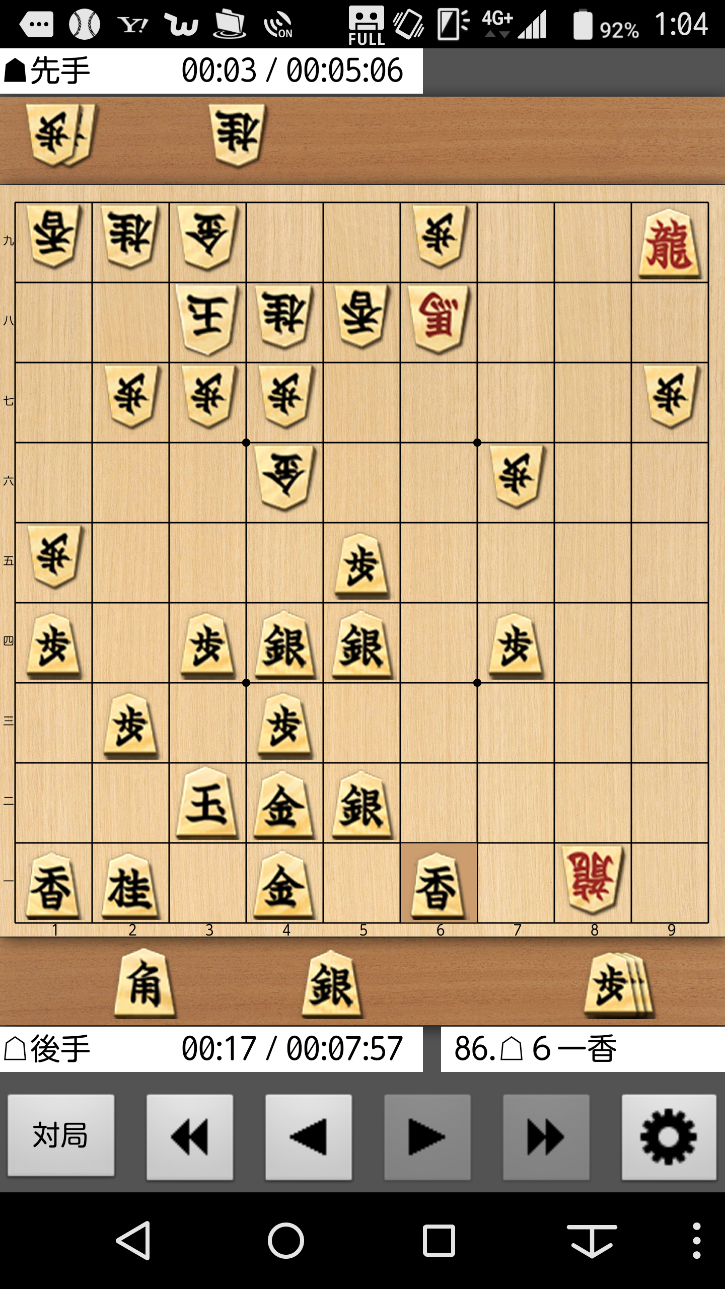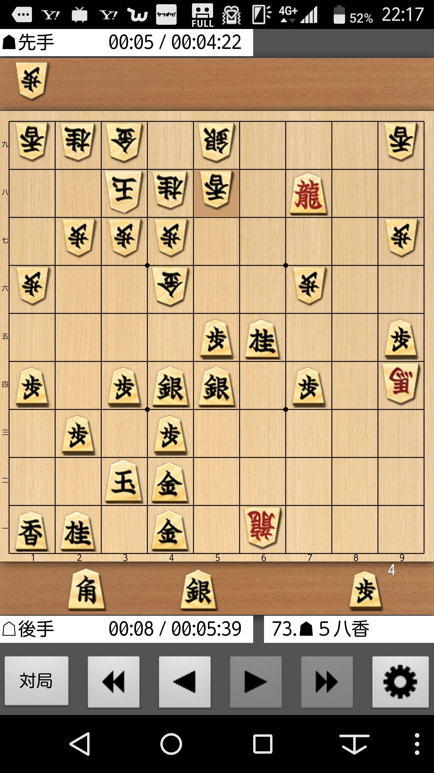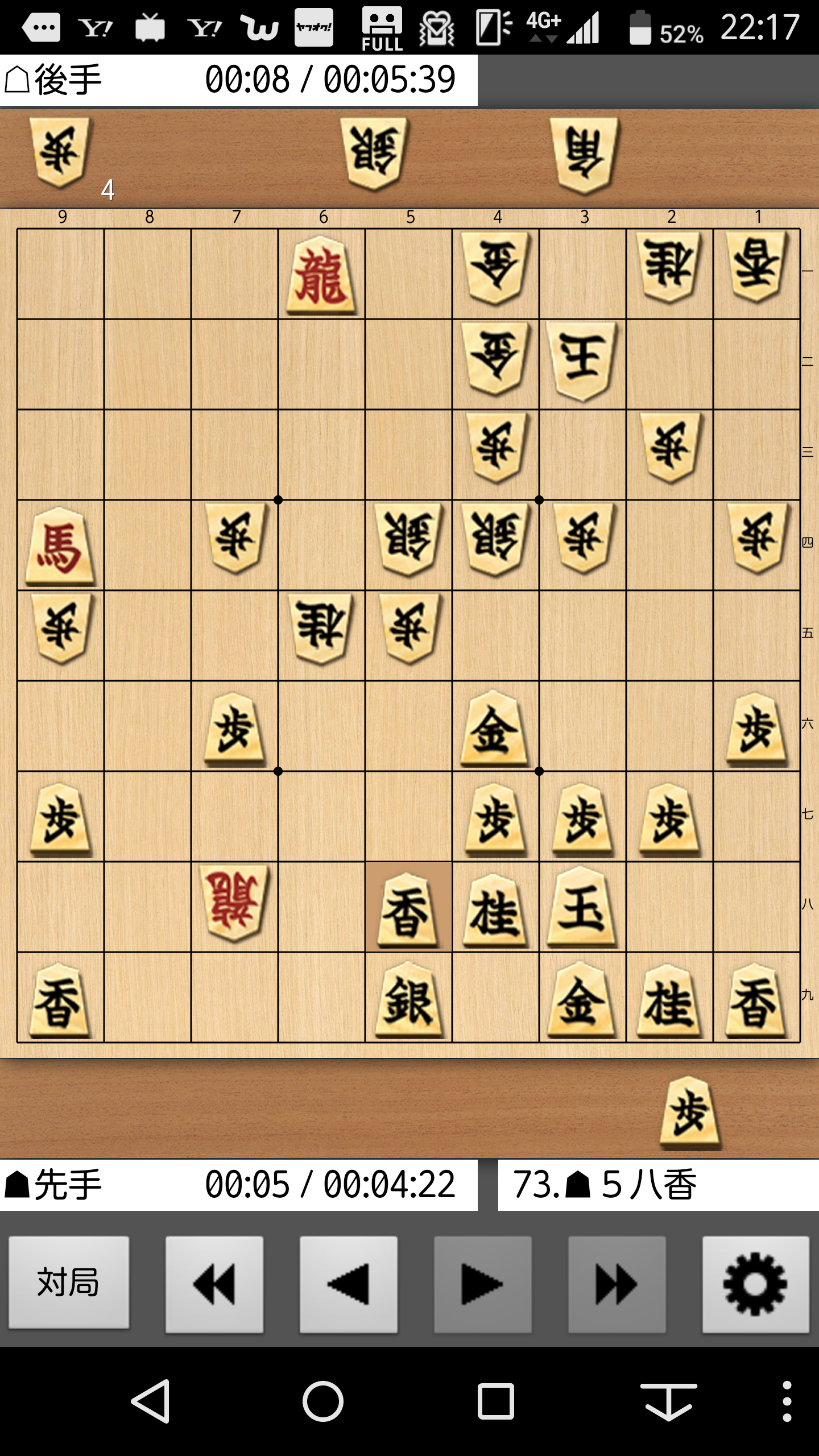 訂正がありましたが、「(73)▲5八香打ち」でよろしいで消化?