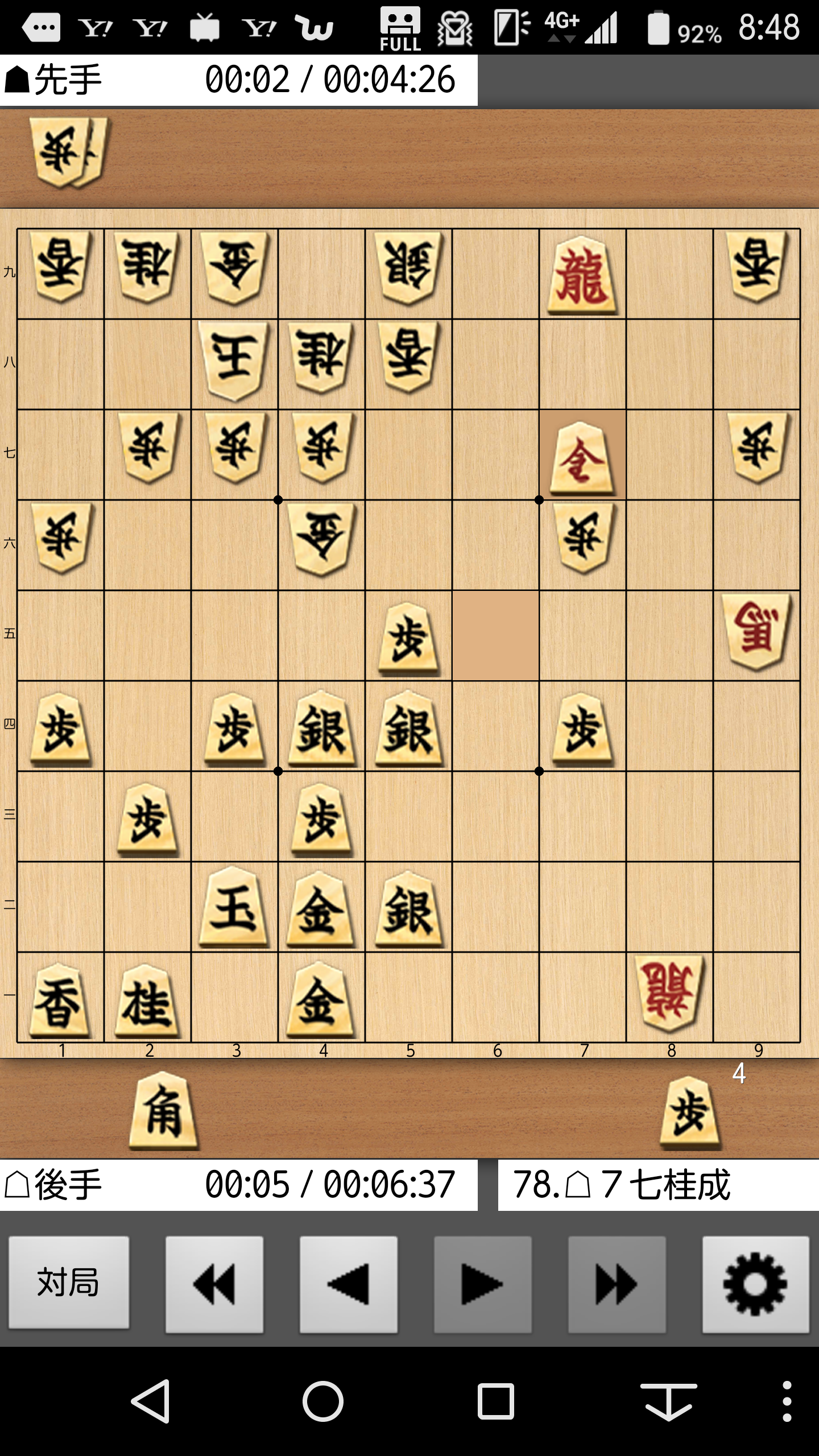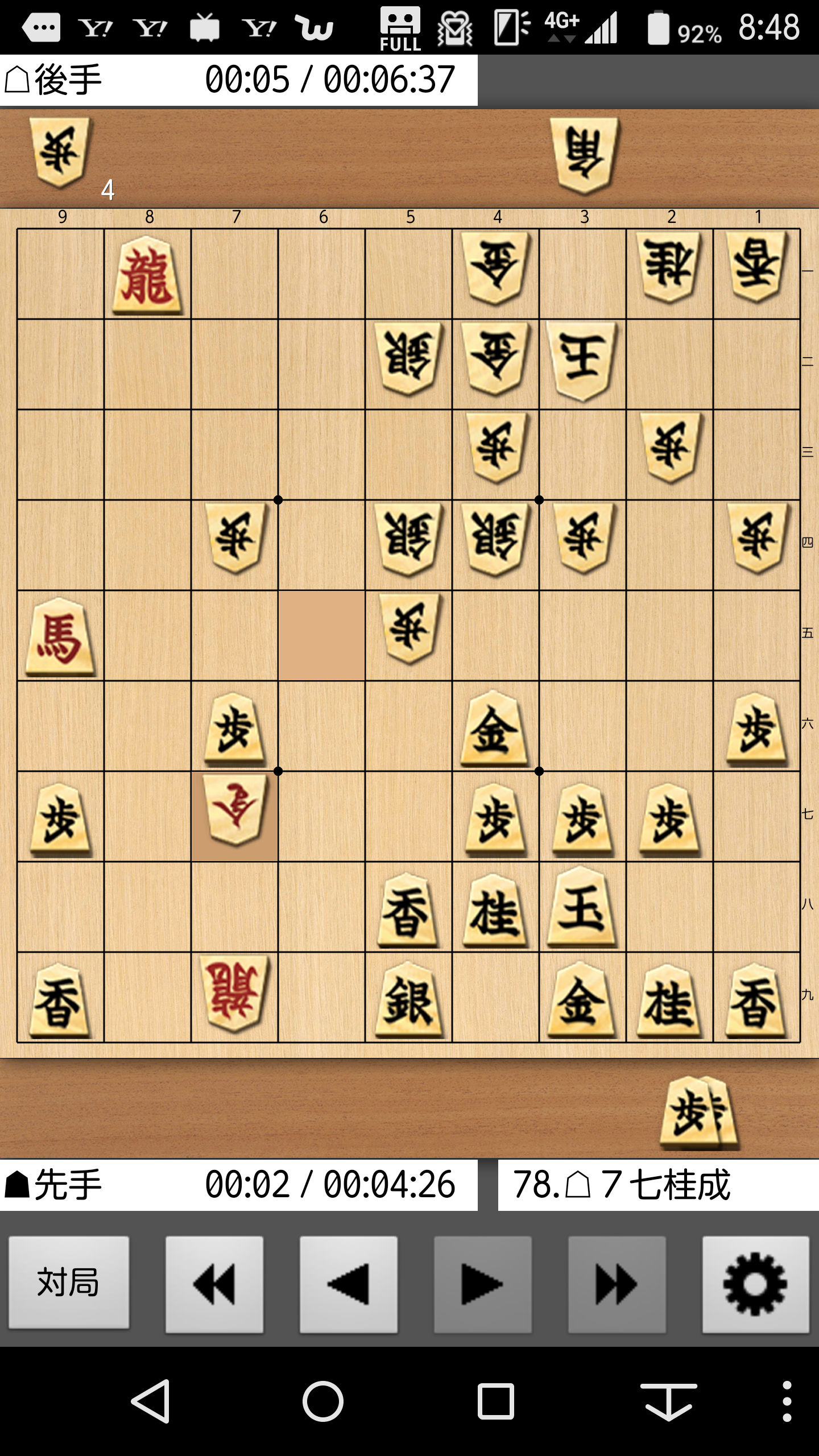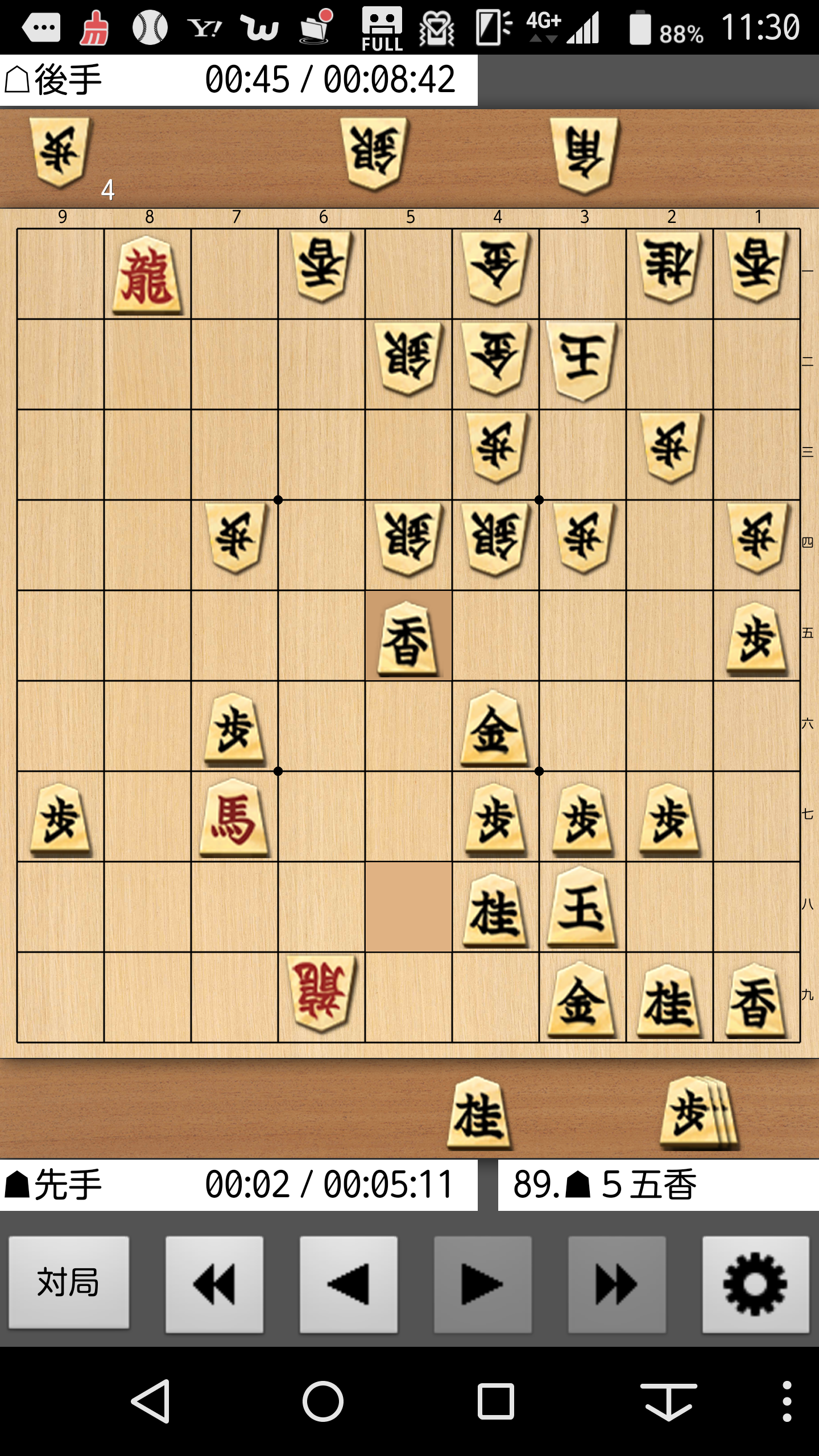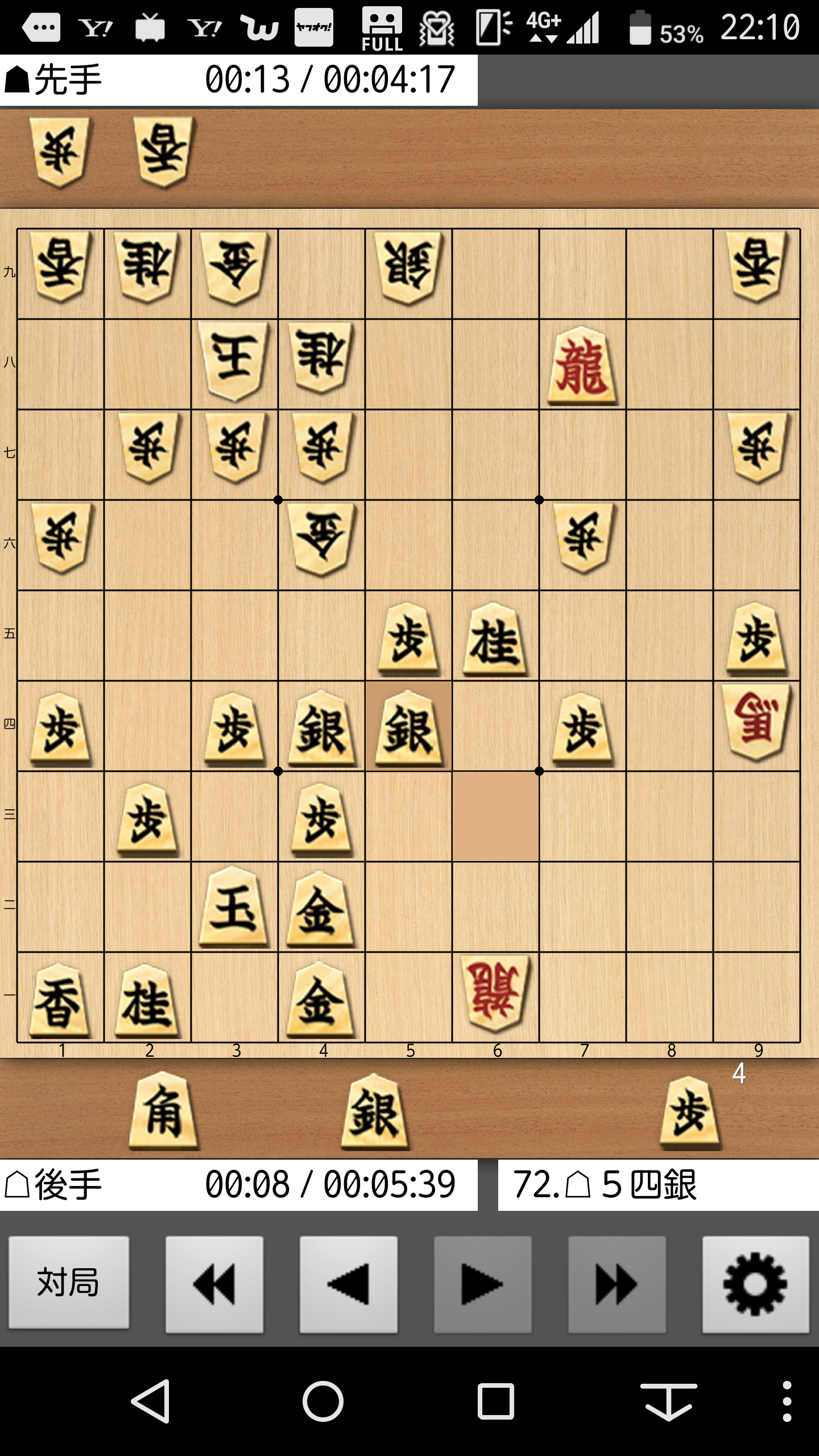 訂正がありましたが、「(73)▲5八香打ち」でよろしいで消化?