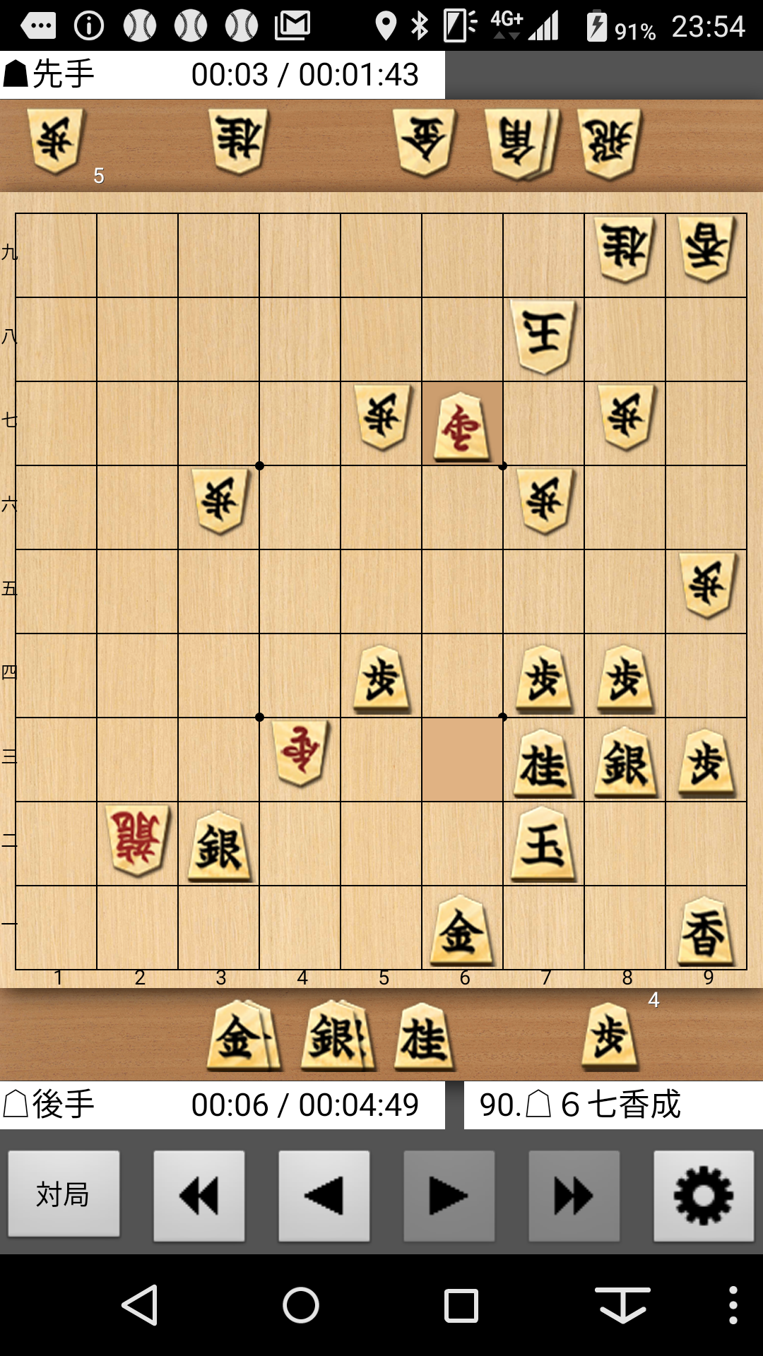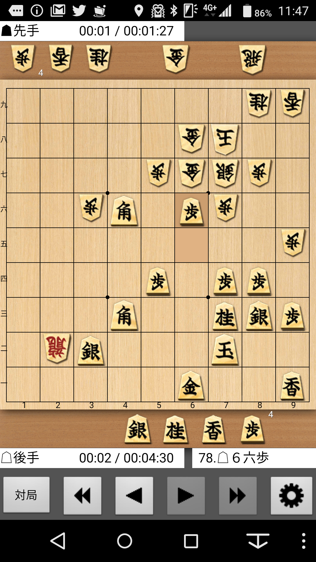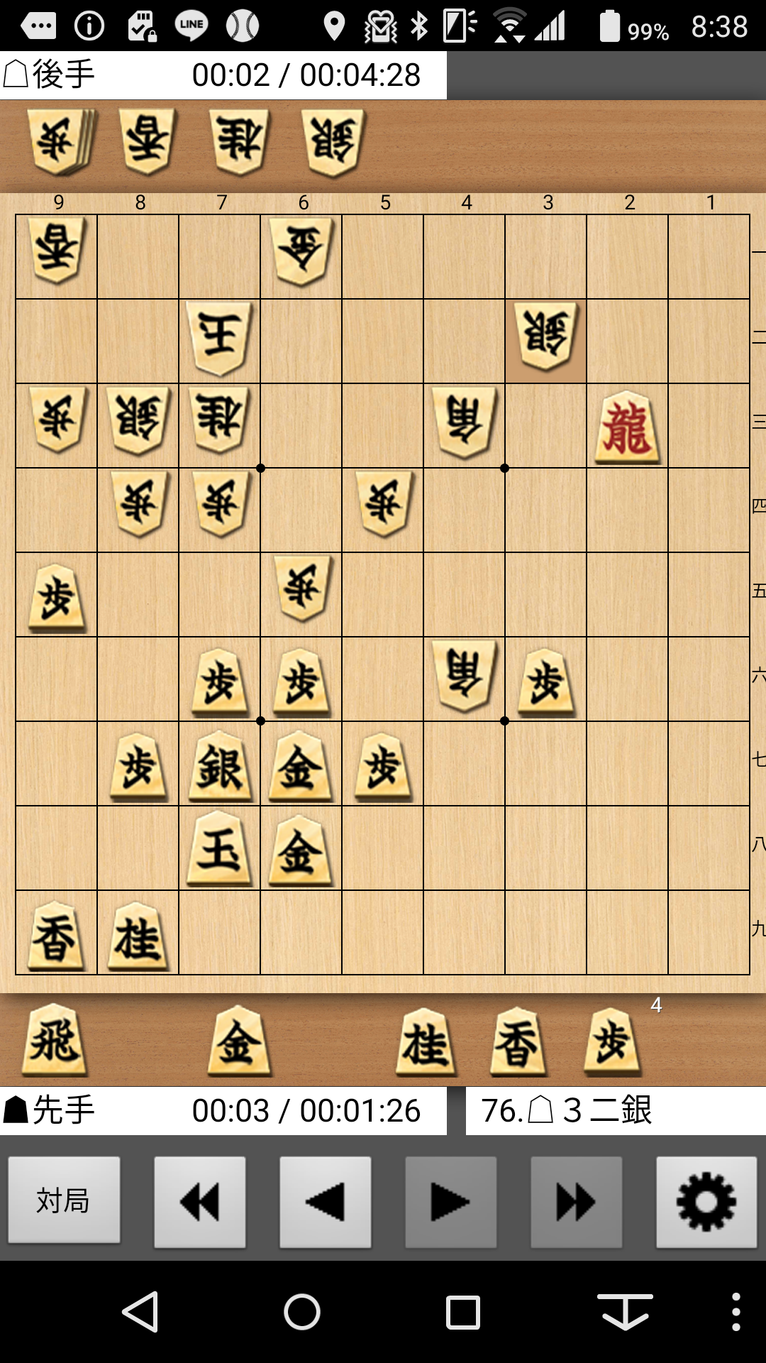 (26)△2四角は一度、やってみたかった手ですが、無理筋でしたね。(54)同桂は同角だったかもしれません。苦しい将棋になりました。明日の夜、解析しておきます。明日の午前中、午後は不在ですので。