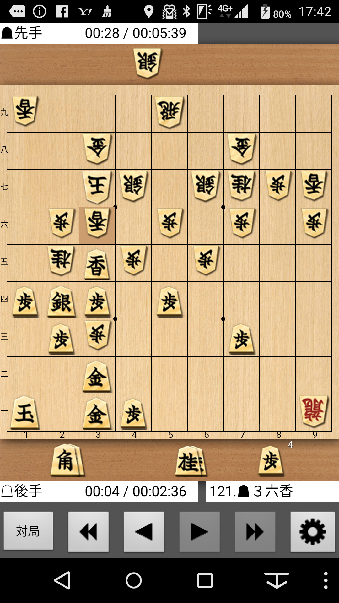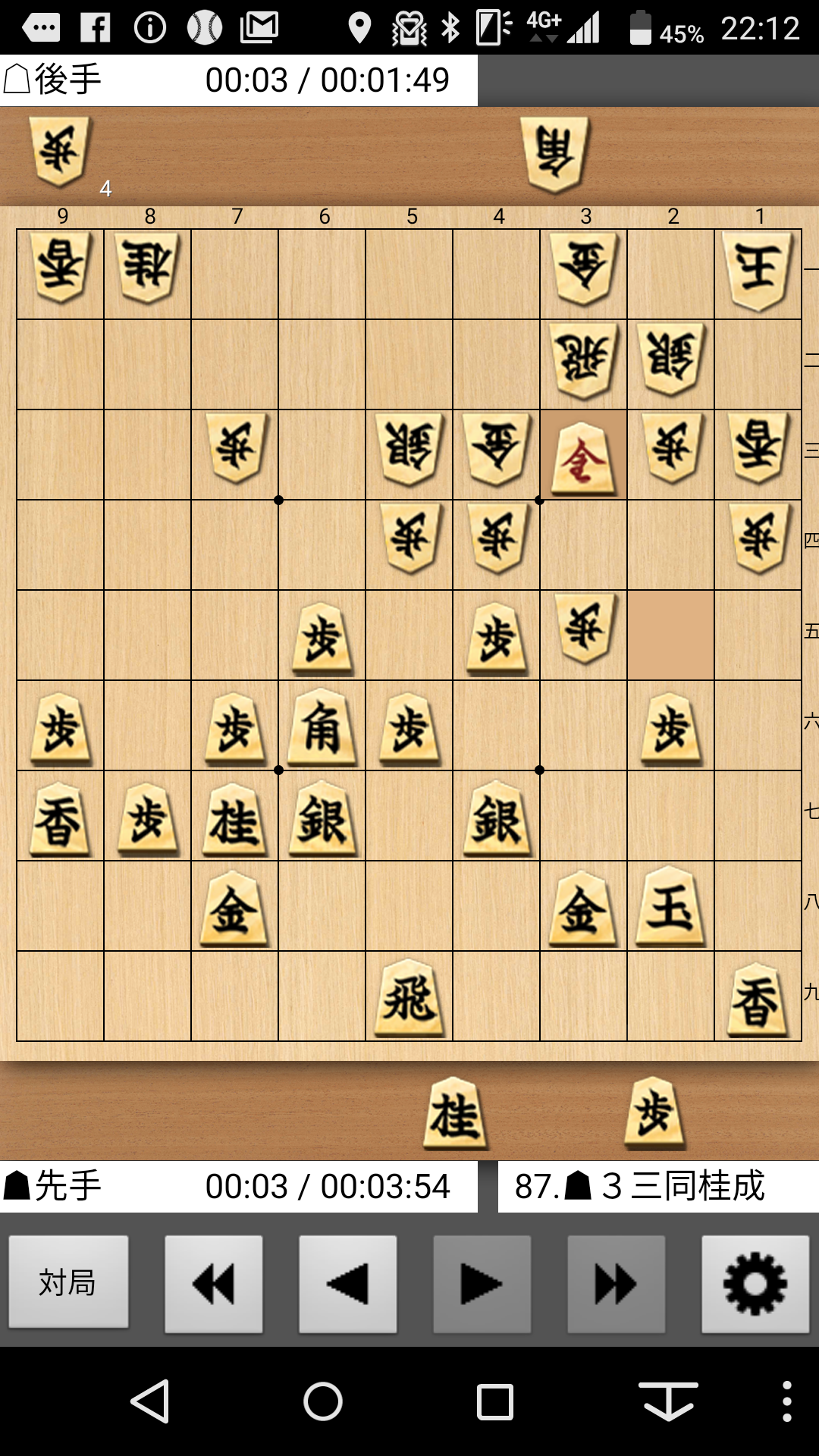 77手目確かに両取りですが私としては5三に角が打ちたくて仕方なかったので邪魔な銀が移動出来ればそれはそれで、と思ってました(-_-;)