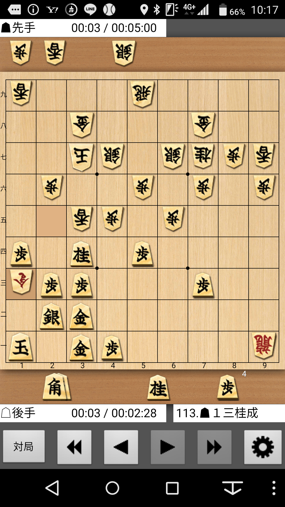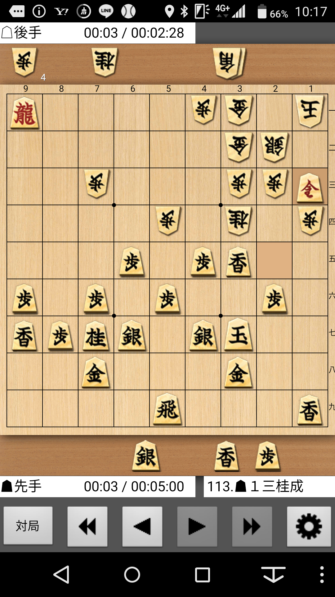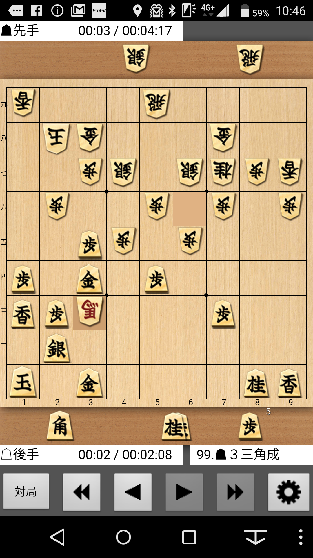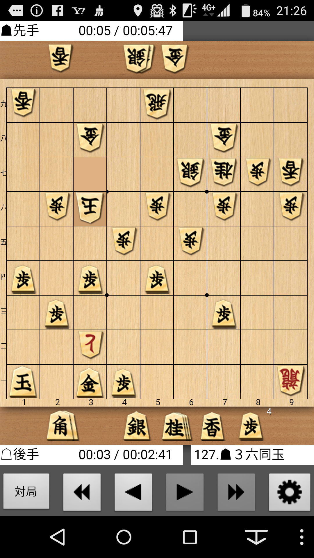 ずっと戦意喪失です。桂馬で王手しても同様に続かないのですね。